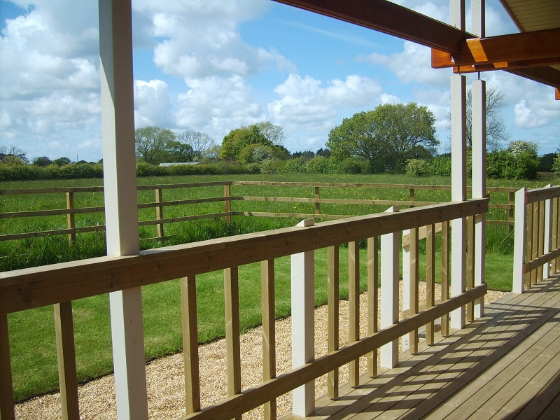 Inside Applecroft you’ll find a comfortable lounge area, kitchen with dining area, two spacious bedrooms which sleep four adults (one with superking-size bed or twin beds, one with twin beds) and wetroom with rain shower. Single guest bed and cot can be provided on request. A covered verandah with outdoor furniture overlooks the garden and meadow.